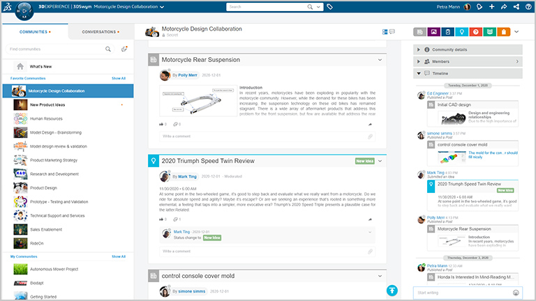 设计师和工程师可以与所有部门协作,获得有关设计的反馈或在 3DSwym 社区中分享想法